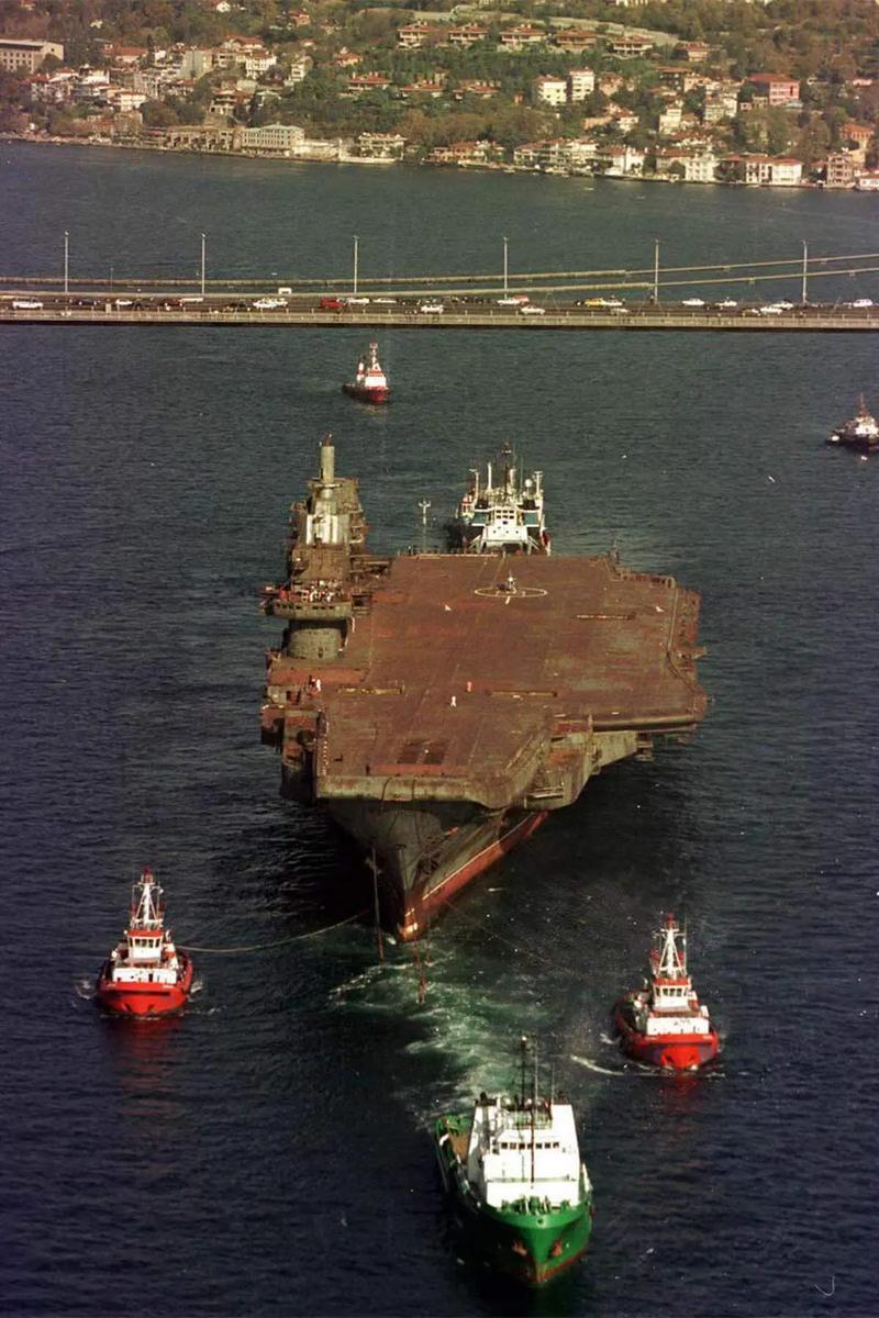 1999 年中国买下它,光拖回国就历经波折,途经土耳其海峡时被拦,谈了 16 个月才放行,2002 年才终于到大连港。